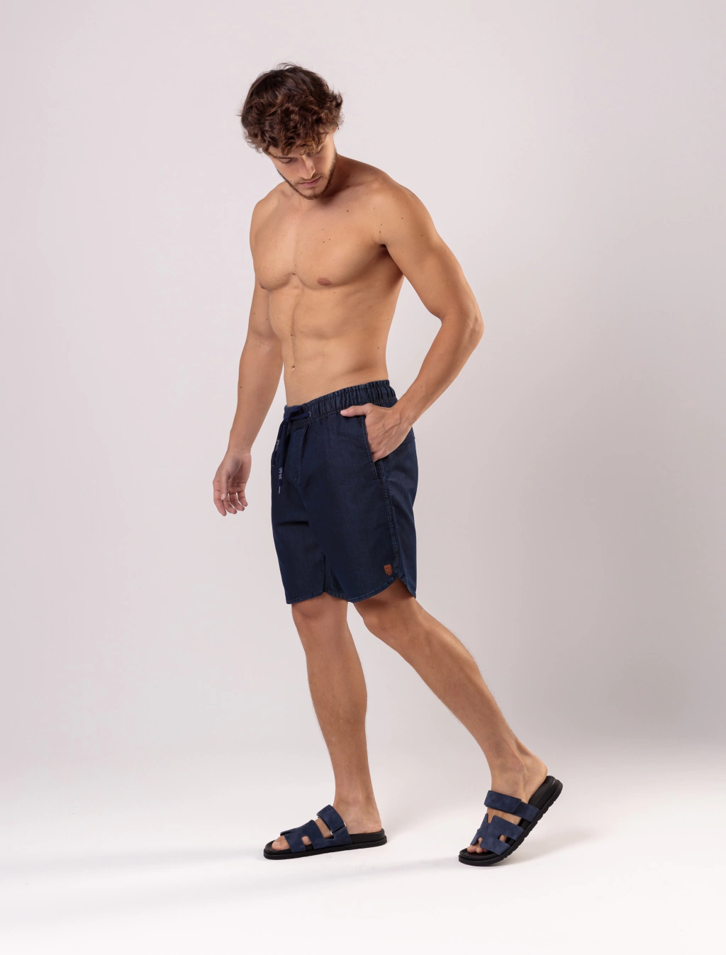 Bermudas jeans com cóis regulável em jeans são ideais para ajustar o conforto conforme necessário durante o dia. Composto por um jeans com elastano tornando a peça bem prática e versátil.