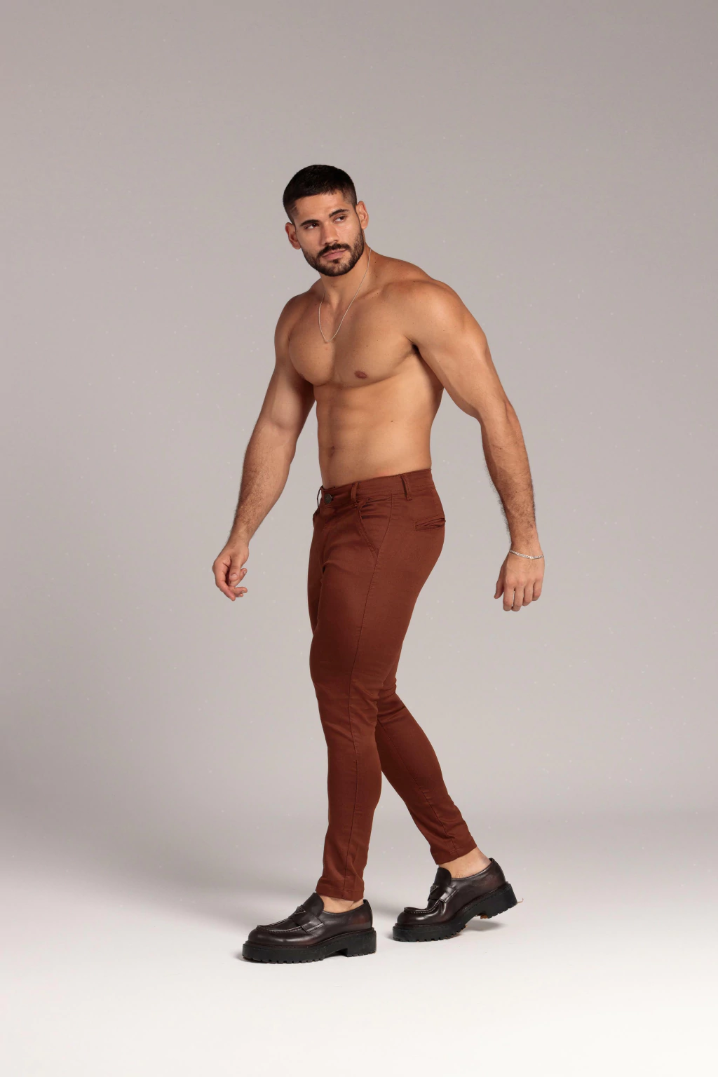 Destaque-se com a calça de alfaiataria masculina na cor chocolate, confeccionada em tecido lito de alta qualidade. Com um corte ajustado e sofisticado, oferece caimento impecável e conforto para qualquer ocasião. Ideal para composições elegantes ou casuais, combinando perfeitamente com camisas, blazers ou camisetas. Adicione sofisticação ao seu guarda-roupa com essa peça versátil e moderna.