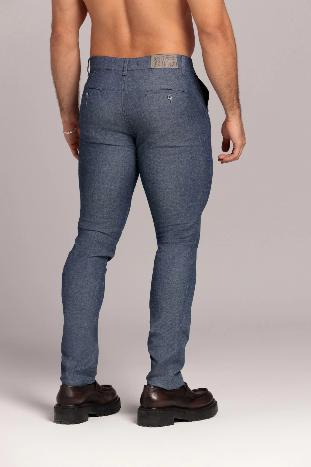 Nossa calça esporte fino social masculina é perfeita para quem busca um visual sofisticado sem abrir mão do conforto. Fabricada com tecido chambrê no brim com elastano, ela se ajusta perfeitamente ao corpo, proporcionando liberdade de movimentos e um caimento impecável.